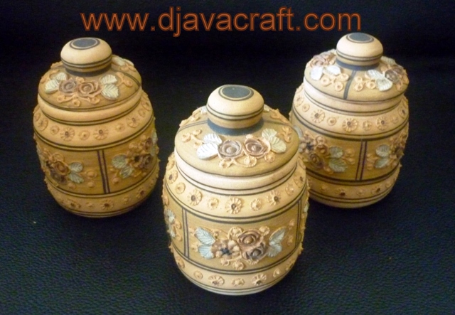 Wadah kopi maupun gula,dihias dengan metode cotot